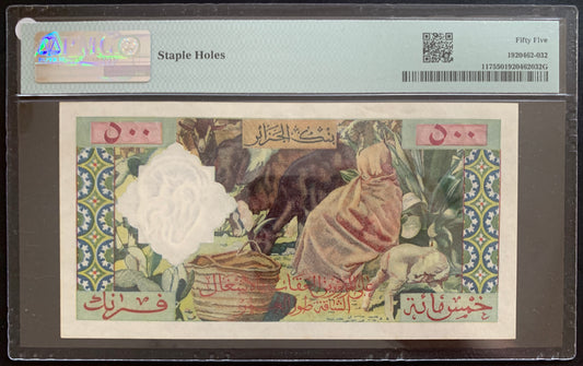 Algeria 500 Francs 1958 P-117 AUNC PMG 55