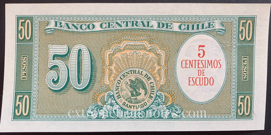 Chile 5 Centesimos ND (1962) P-126b UNC (overprint on 50 Pesos P-121)