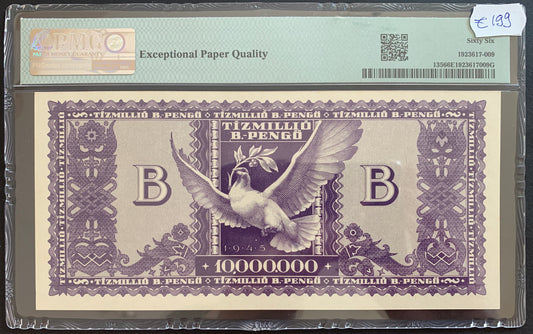 Hungary 10 million B.-Pengő 1946 P-135 PMG 66 EPQ GEM UNC