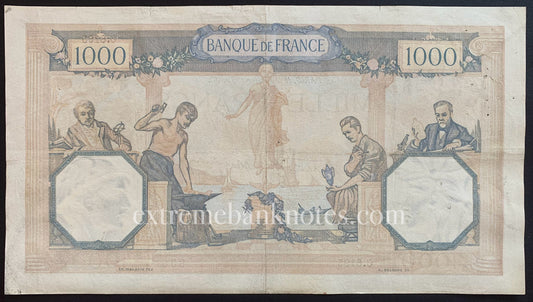 Sold outFrance 1000 Francs 1939 P-90c F+