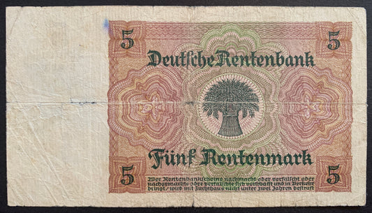 Germany 5 Reichsmark ND (1940-45) P-R138a VF 7 digit serial number