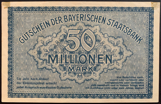 Germany, Bavaria 50 million Mark notgeld 1923 XF