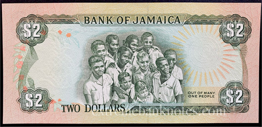 Jamaica 2 Dollars 1989 P-69c UNC