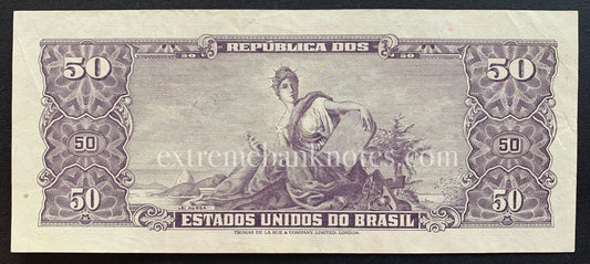 Brazil 50 Centavos ND (1967) P-186 F (overprint on 500 Cruzeiros)