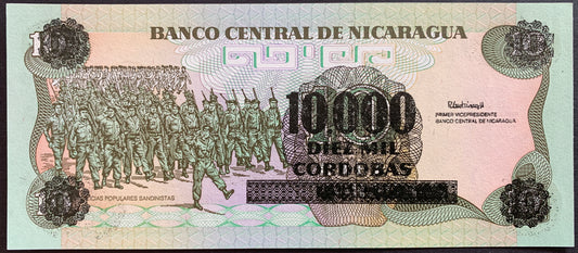 Nicaragua 10 000 Cordobas ND (1989) P-158 UNC overprint on 10 Cordobas