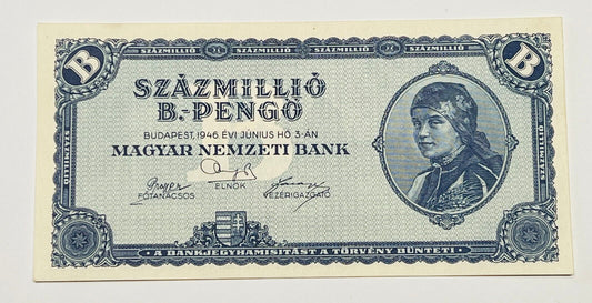 Hungary 100 Millió B-Pengő 1946 P#136 (100,000,000,000,000,000,000 Pengos)