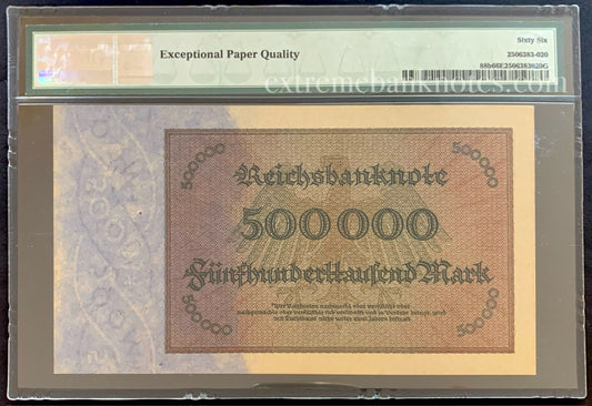 Germany 500 000 Mark 1923 P-88b PMG 66 GEM UNC EPQ