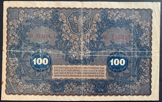 Sold outPoland 100 Marks 1919 P-27 F