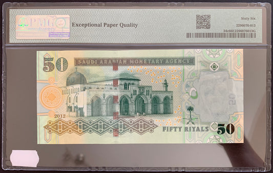 Saudi Arabia 50 Riyals 2012 (AH1433) P-34c PMG 66 GEM UNC EPQ