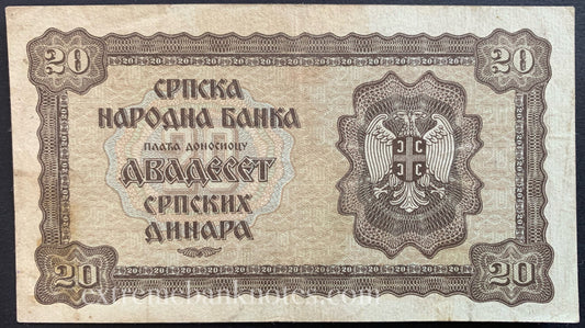 Serbia 20 Dinara 1941 P-25 VF (German occupation)