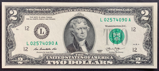 USA 2 Dollars 2013 A P-538 UNC CONSECUTIVE