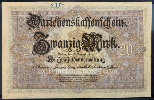Germany Darlehenskassenschein 20 Mark 1914 P-48b XF