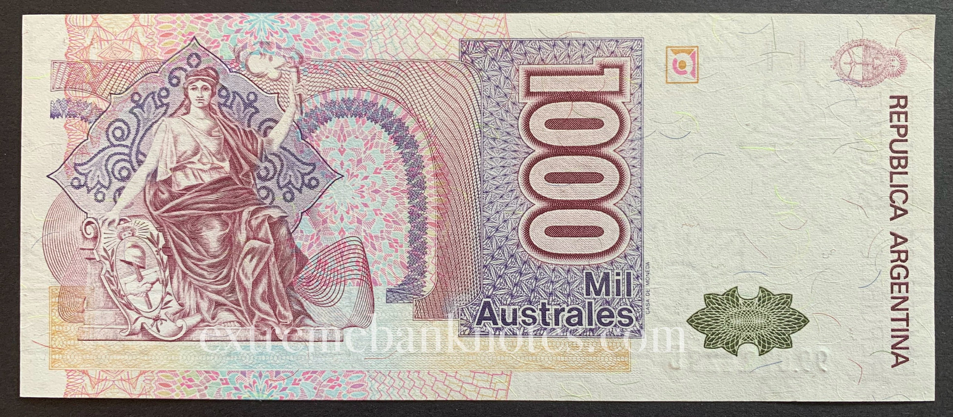 - Argentina 1000 Austral ND (1989) P-329b (Series B, Signatures: REDP, JGF)