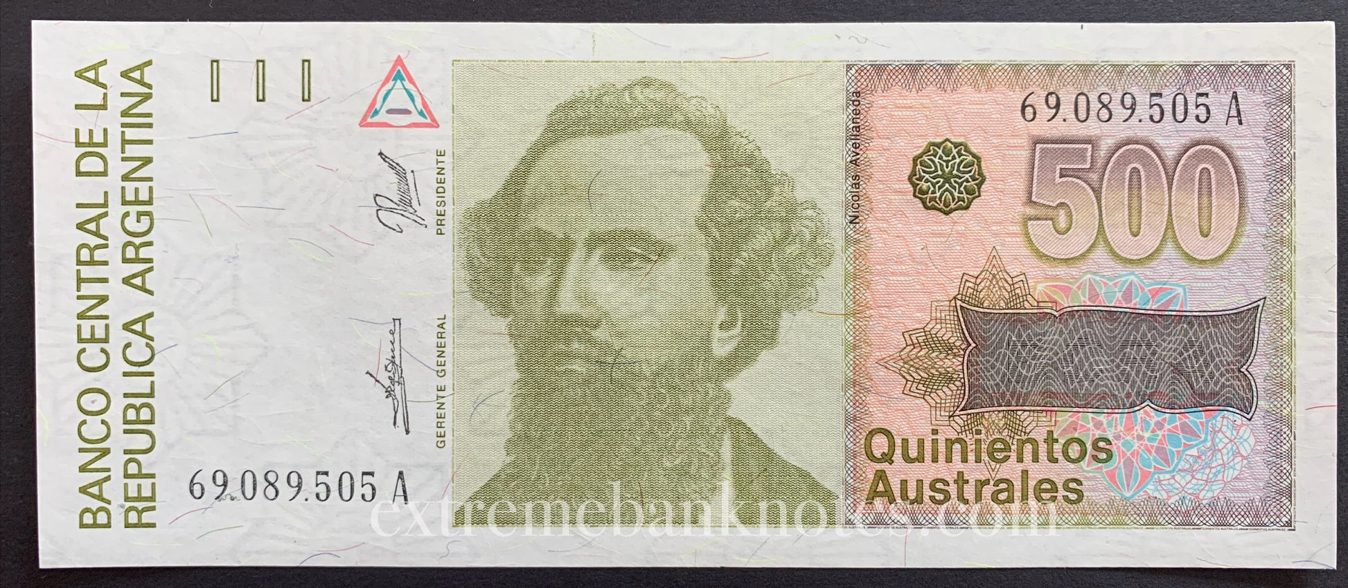 - Argentina 500 Austral ND (1990) P-328b (Series A, Signatures: REDP, JGF)