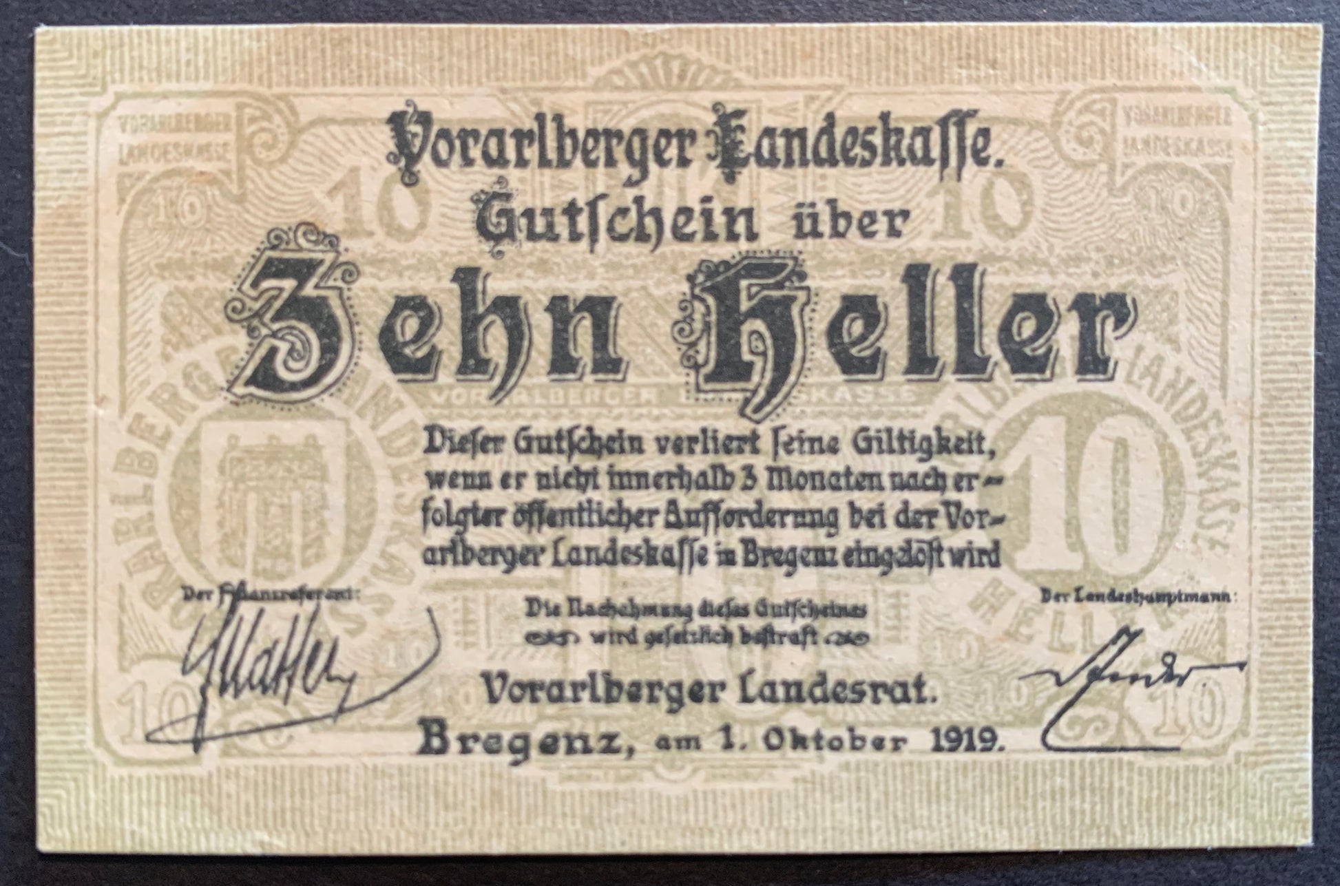 - Austria, Vorarlberg 10 Heller 1919 P-S145 UNC