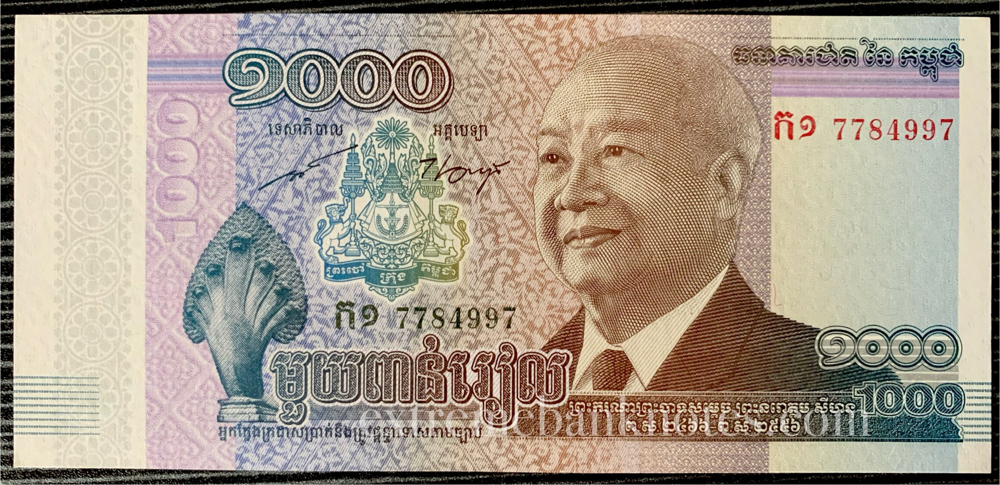 - Cambodia 1000 Riels 2012 P-63 UNC commemorative banknote: funeral of King Sihanouk