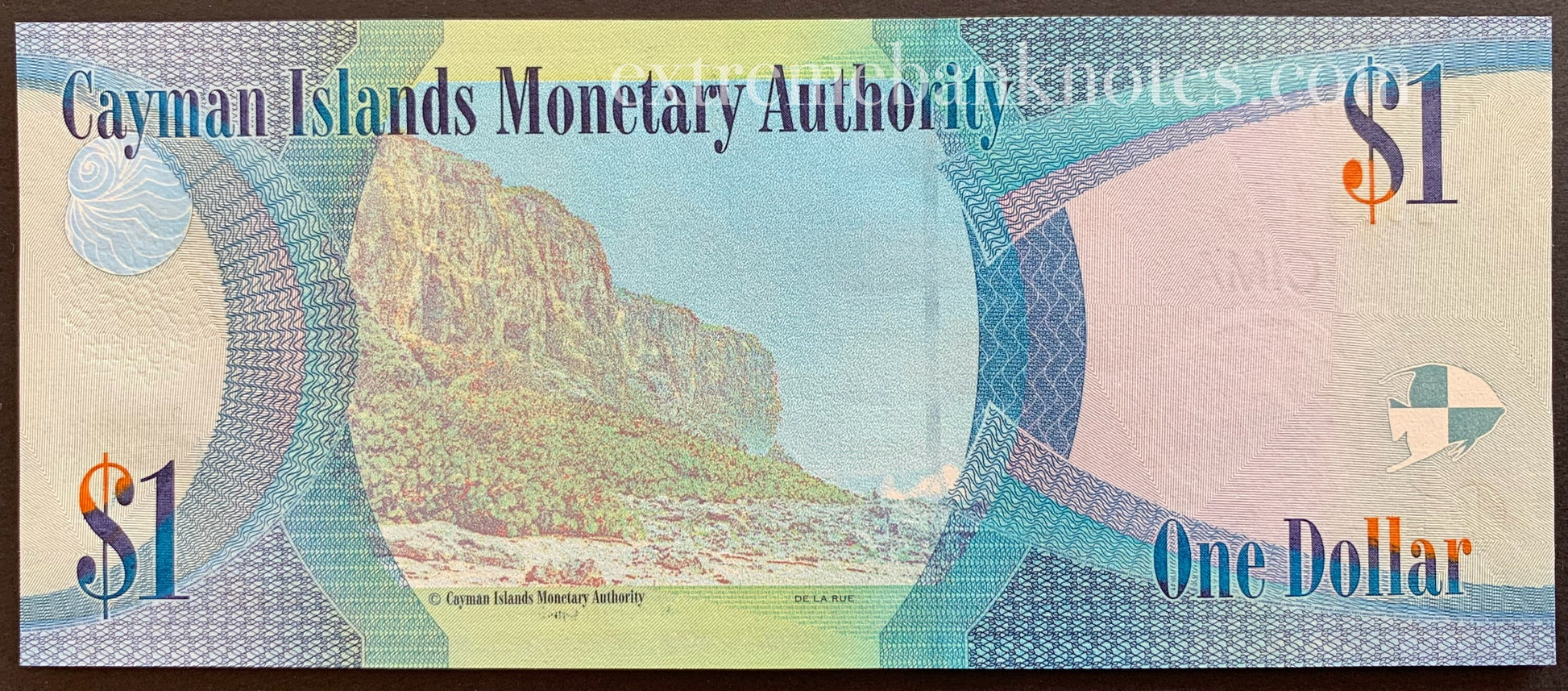 Cayman Islands one Dollar banknote from 2010 Pick no 38b in Uncirculated condition. Graded according to the Standard Catalog of World Paper Money.