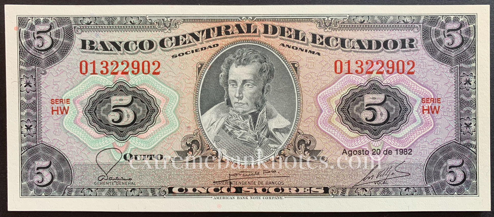 Ecuador 5 Sucres 1982 P-108b UNC