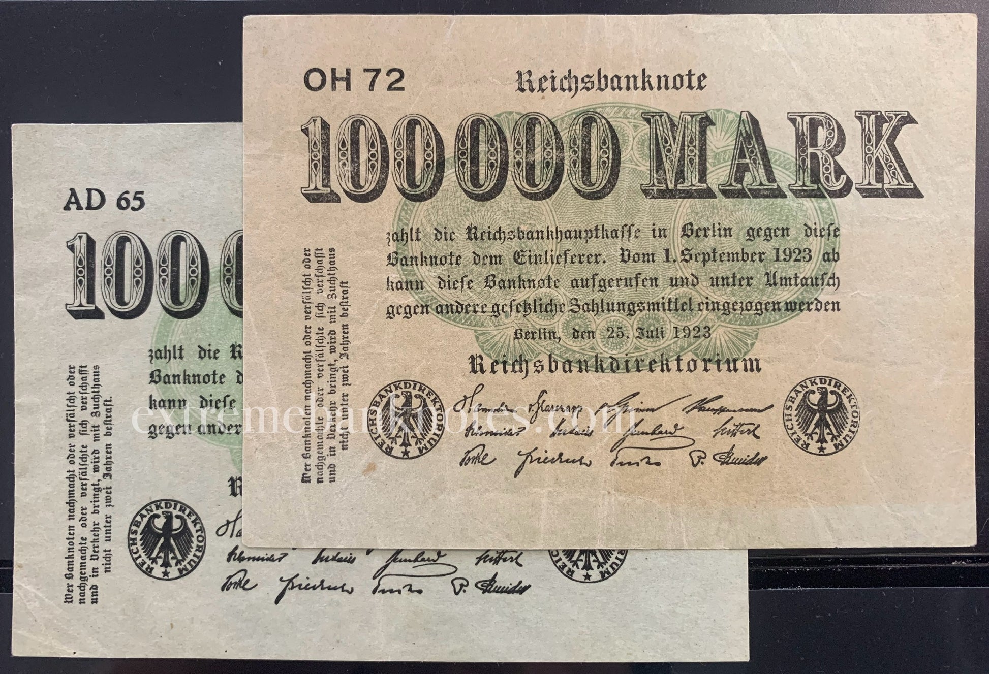 Germany 100,000 Mark 1923 P-91b VF color variation set