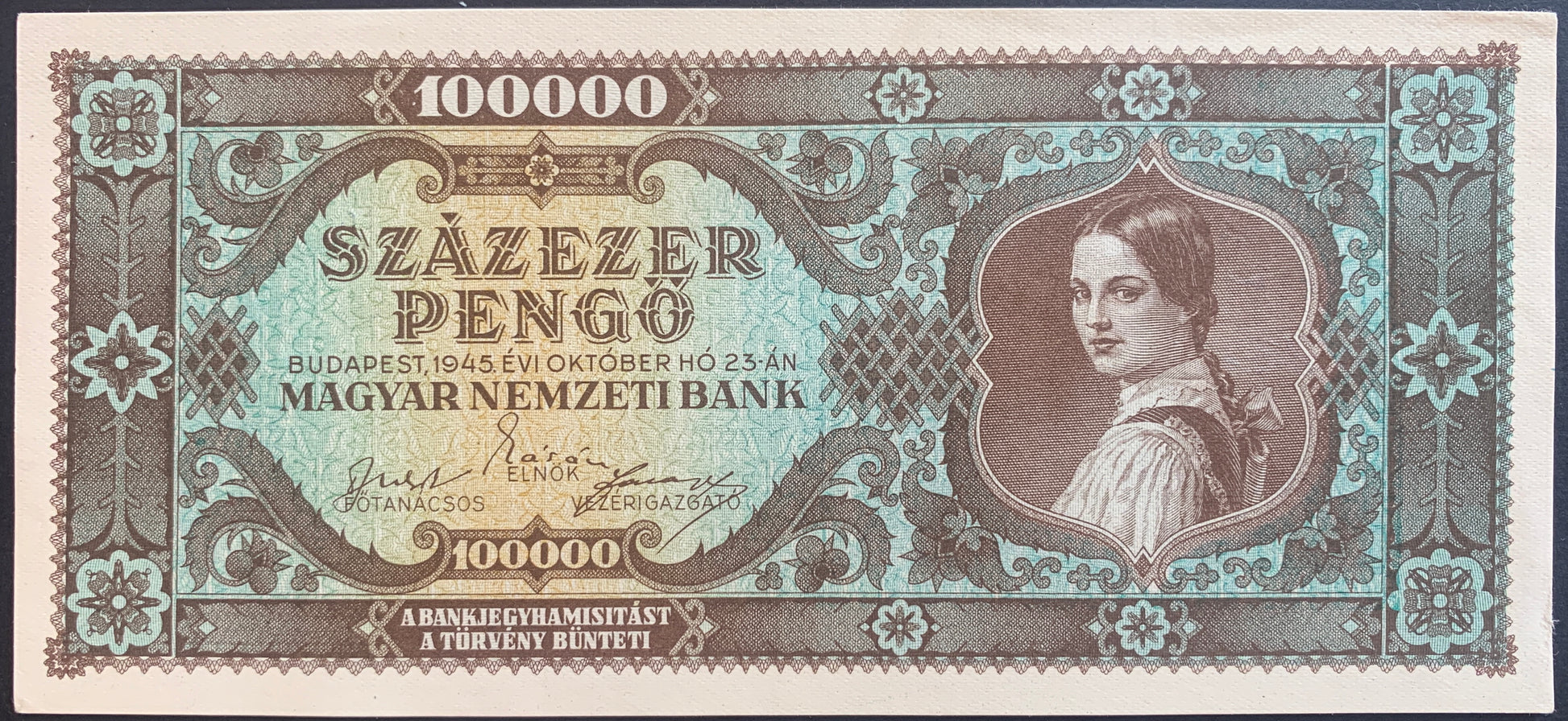 Hungary 100 000 Pengő 1945 P-121a AUNC
