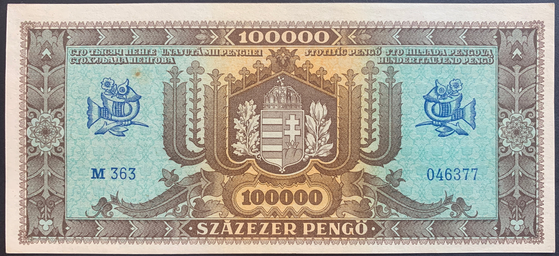 Hungary 100 000 Pengő 1945 P-121a AUNC+ CONSECUTIVE