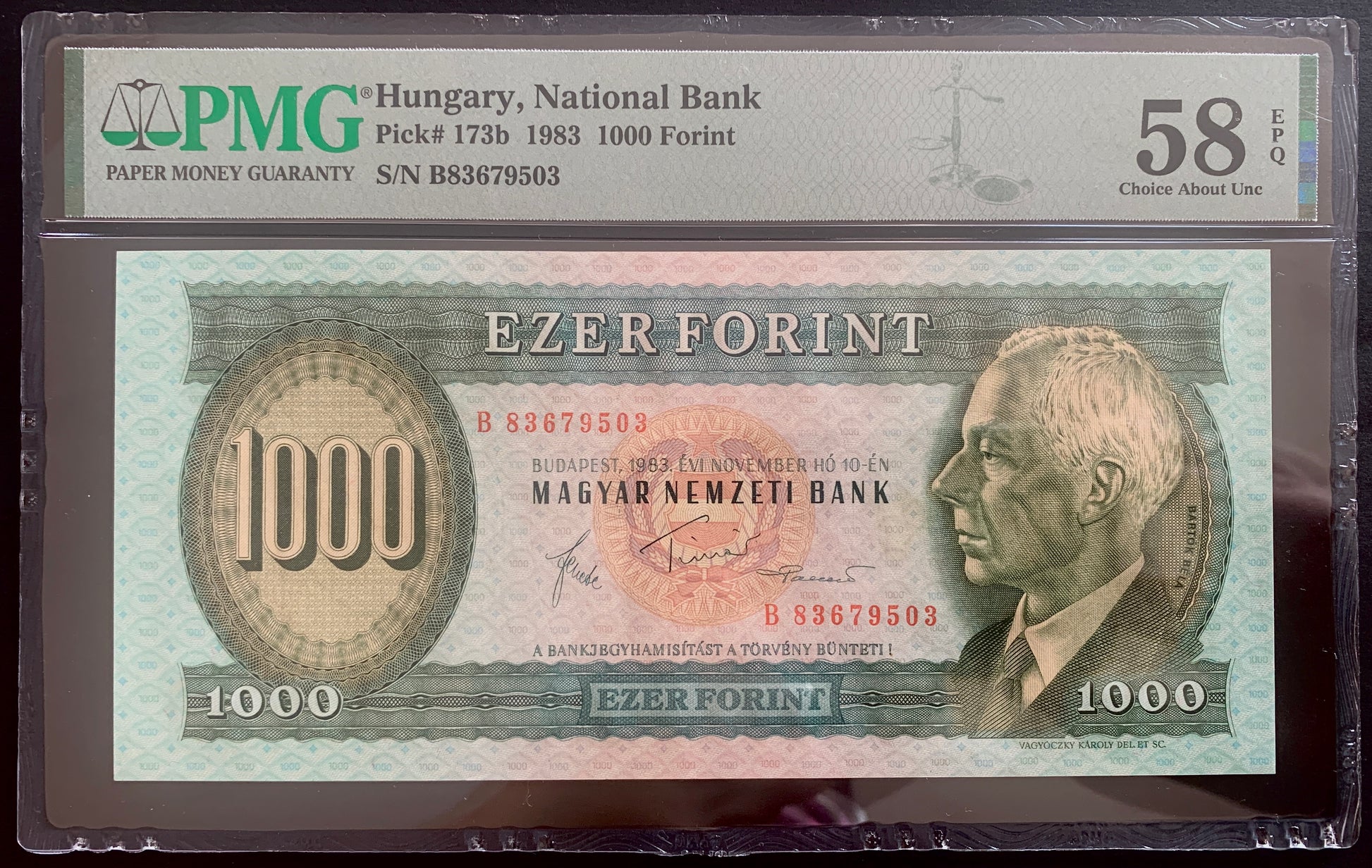 Hungary 1000 Forint 1983 P-173b PMG 58 choice AUNC EPQ