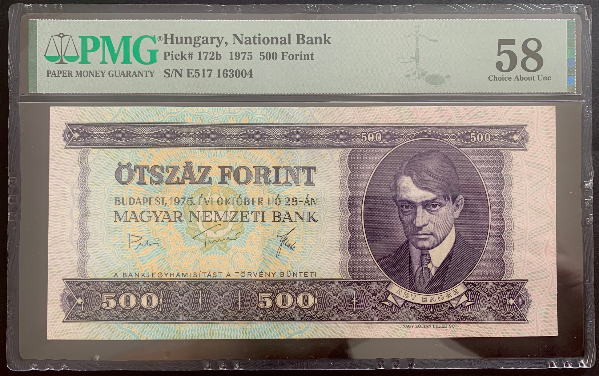 Hungary 500 Forint 1975 P-172b PMG 58 choice AUNC