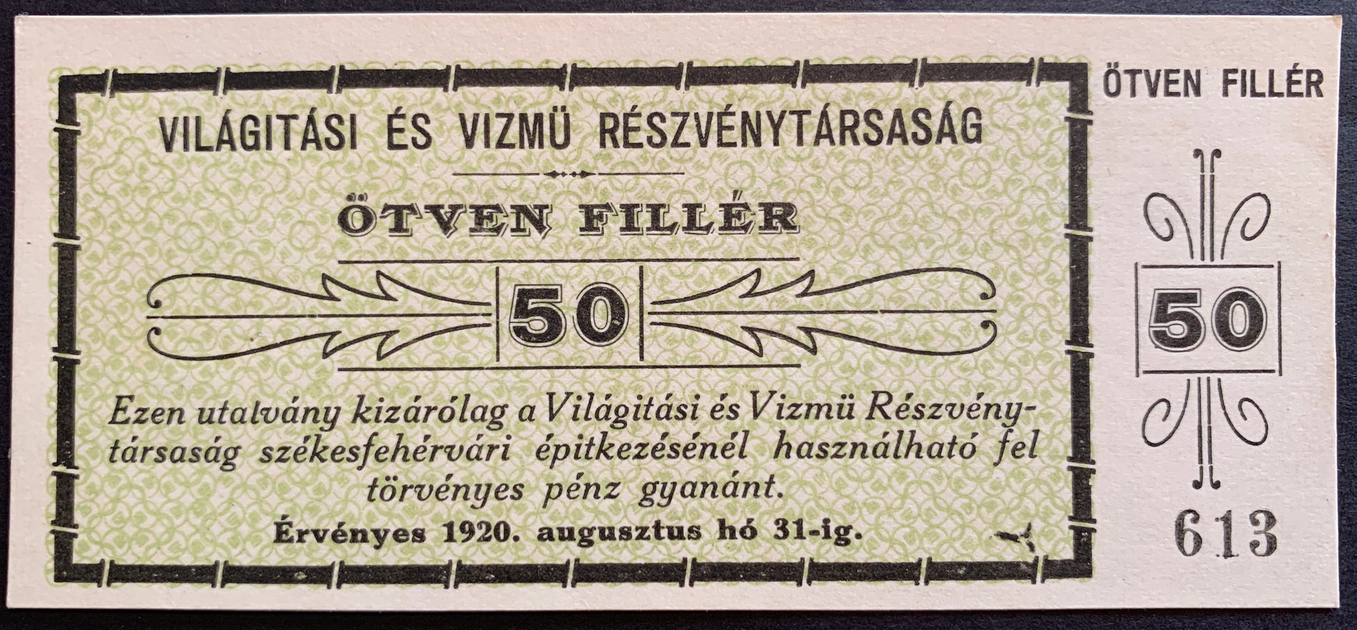 2 genuine historical banknotes from Székesfehérvár, Hungary