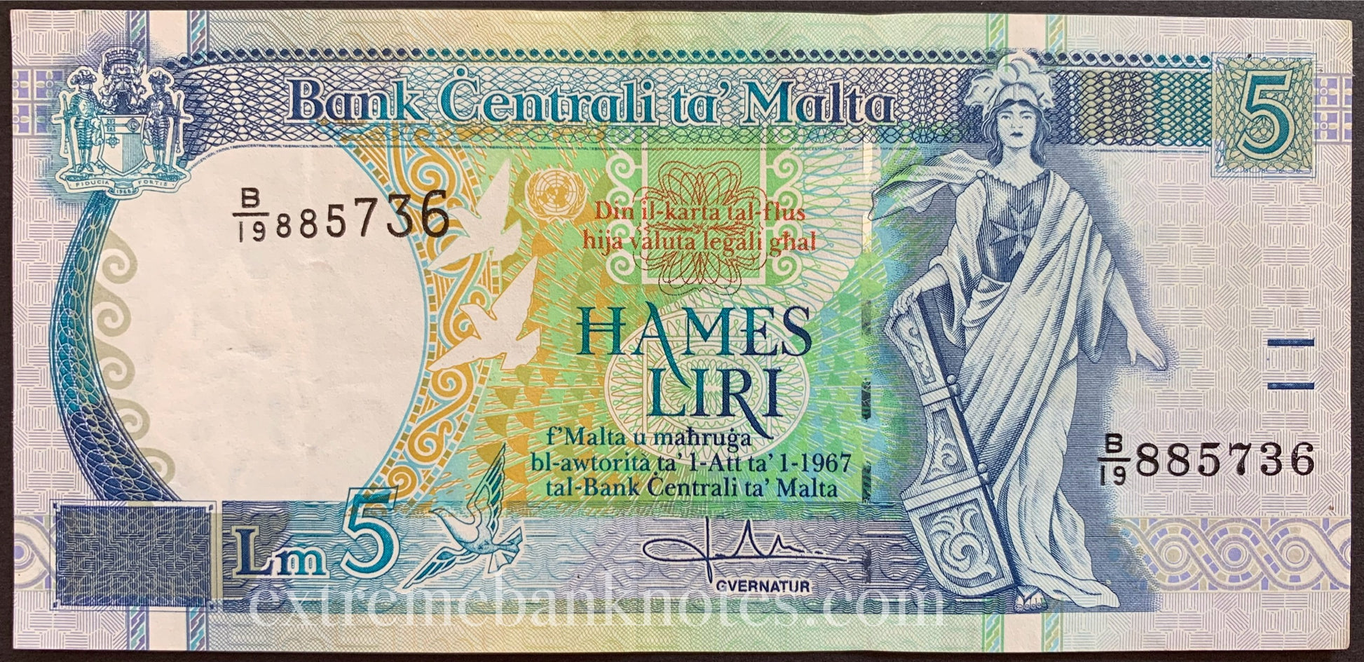 Malta 5 Liri ND (1994-1997) P-46b VF