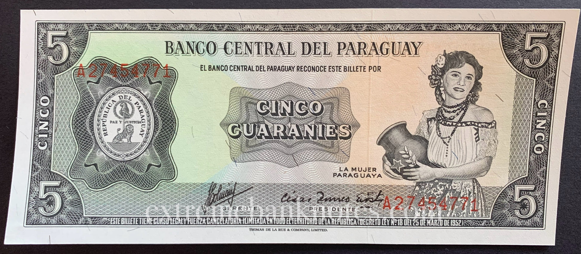 Paraguay 5 Guaranies ND (1963) P-195b UNC