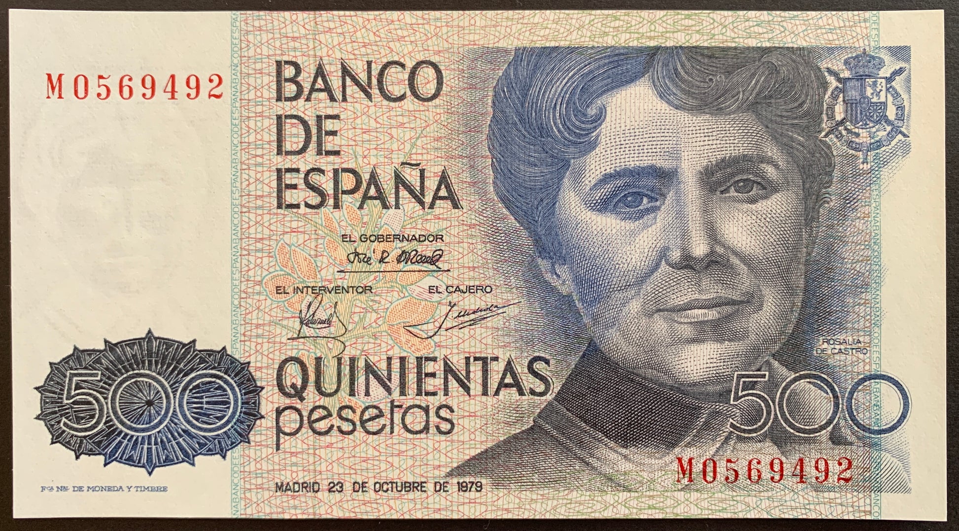 Spain five hundred Pesatas banknote from 1979 Pick no. 157 in Uncirculated condition. Graded according to the Standard Catalog of World Paper Money.