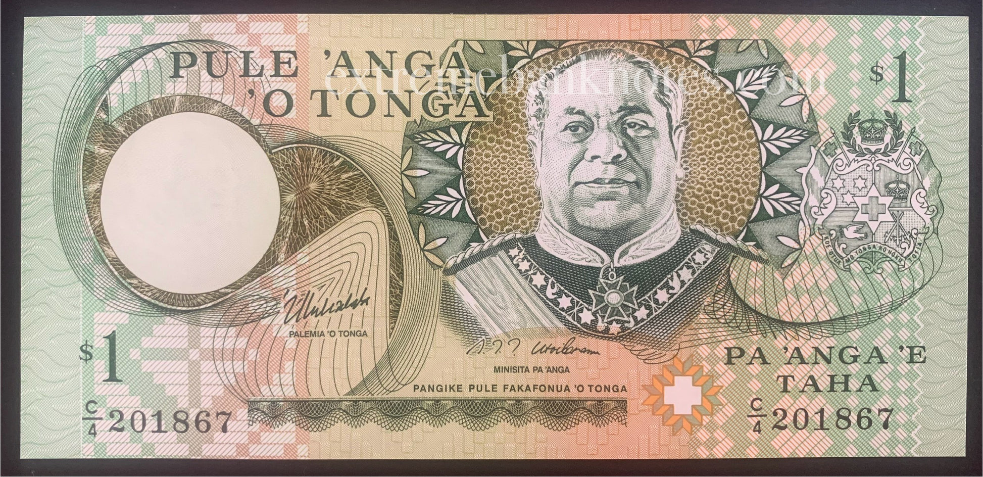 Tonga one paanga Pick 31 banknote from 1995 in Uncirculated condition. Graded according to the Standard Catalog of World Paper Money.