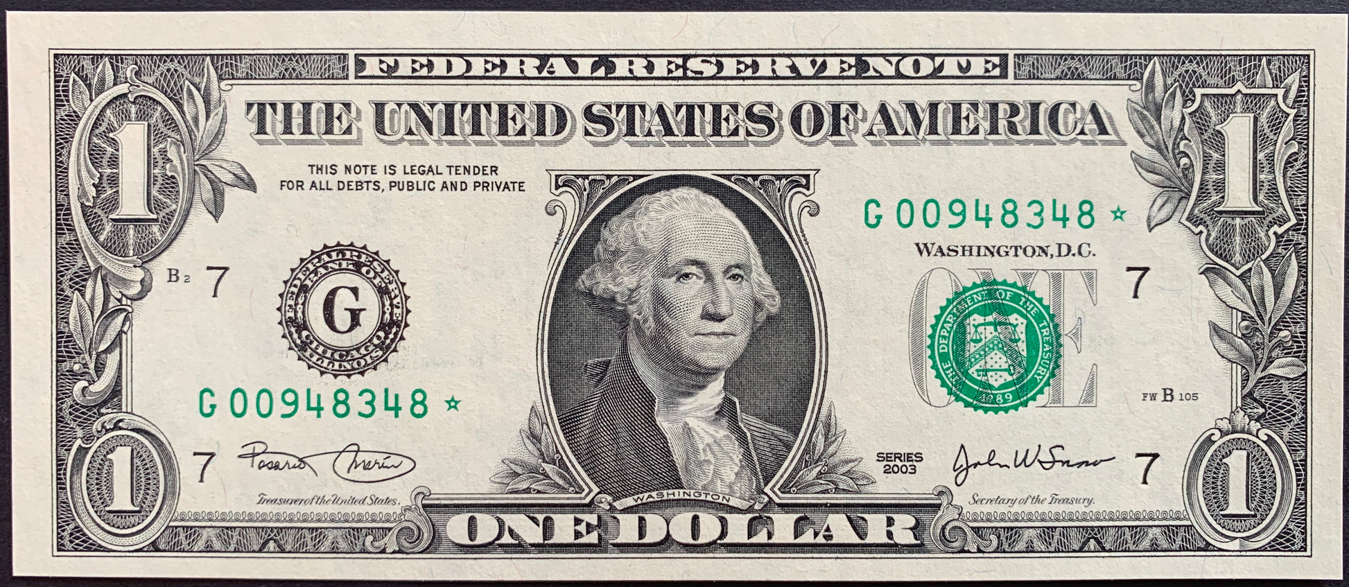 USA 1 Dollar 2003 B P-515a UNC G STAR ☆