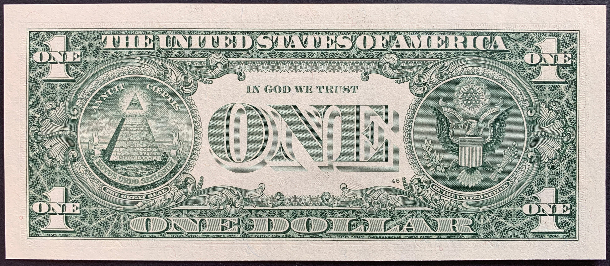 Great Seal of the United States around 'ONE'