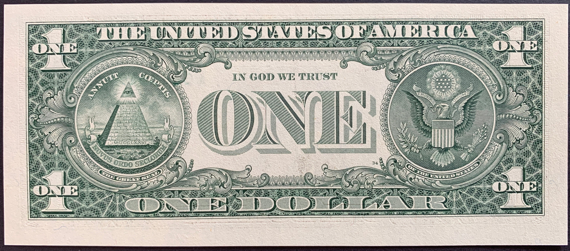 Great Seal of the United States around 'ONE'