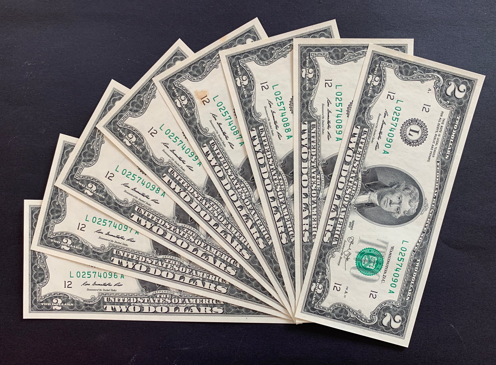 USA 2 Dollars 2013 A P-538 UNC CONSECUTIVE